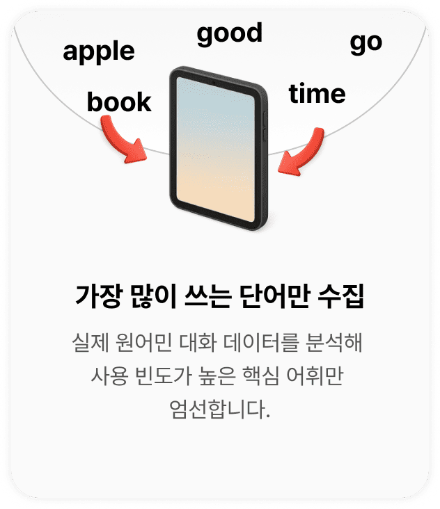 교재는 앱 학습의 완벽한 파트너입니다. 이동 중에는 앱으로 간편하게 학습하고, 집에서는 교재에 직접 필기하며 복습하여 학습 효과를 극대화해 보세요. 또한, 앱에서 아직 배우지 않은 단어를 미리 예습하거나, 전체 3,000단어를 한눈에 살펴보는 사전처럼 활용할 수도 있습니다.